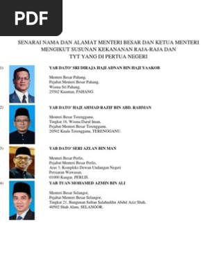 Menteri Besar berjalan mengikut masa yang ditentukan. SENARAI NAMA YAB MENYERI BESAR. Hr at terengganu dot gov dot my No.